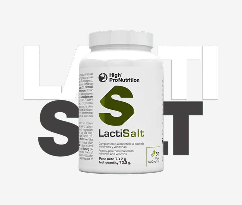 ¿Qué es Lacti Salt? Lacti Salt es la versión mejorada de Lacticram, diseñada específicamente para una ingesta continua durante ejercicios prolongados. Esta versión mejorada, Lacti Salt, ha sido enriquecida con una sal de ácido ortofosfórico (potasio1, así como con las vitaminas B6 2, D3 3 y un complejo mineral. La incorporación de la sal de ácido ortofosfórico (potasio) en Lacti Salt proporciona beneficios adicionales. 1 Potasio para el funcionamiento normal del sistema nervioso y músculos 2 Vitamina B6 para reducir cansancio y fatiga 3 Vitamina D para un sistema inmunitario saludable En resumen, Lacti Salt es una opción mejorada para apoyar tu rendimiento durante el ejercicio prolongado. Modo de empleo Tomar 3 cápsulas día. Ingredientes Sal cálcica de ácido ortofosfórico, Citrato de sodio, Óxido de magnesio, Carbonato de calcio, Antiaglomerante (dióxido de silicio), Bisglicinato de magnesio, Antiaglomerante (Sal magnésica de ácido graso), Clorhidrato de piridoxina (vitamina B6), Colecalciferol (vitamina D3), Cápsula vacia.